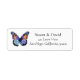 Brillen Sie Ihre E-Mail mit diesen auffälligen personalisierten Adressetiketten, die ein atemberaubendes blaues, lila und orangefarbenes Schmetterlingsdesign aufweisen. Fügen Sie einfach Ihren Namen und Ihre Adresse auf der rechten Seite für eine einzigartige Touch ein. Ideal, um Ihrem Briefwechsel einen lebendigen und künstlerischen Flair hinzuzufügen