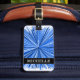 Dieses GepäckanhängerAusrüstungsbeschreibungen ein Muster mit Linien färbten die verschiedenen Schatten des Blaus berstend heraus von einem zentralen Punkt. Er kennzeichnet auch einen personalisierten Namen auf der Front und personalisierte Kontaktdetails über die Rückseite.