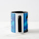 Personalized men's portrait mug for a graduation with a blue lines pattern on the background and the class, the graduate's name, degree, university name, and a grad cap design on the back. To create a cut-out, crop your image to the desired subject and use the "remove background" tool.