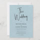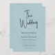 Whimsical minimalistische moderne, anpassbare schwarze Skript Typografie, elegante Hochzeitseinladung. Der hellblaue, bedruckte Leinenhintergrund verleiht dem Ganzen eine Touch Bio Eleganz. Andere Farben sind verfügbar.