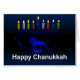 Eine blaue, lionenförmige Chanukkah-Menorah mit hellen Kerzen. Fügen Sie Ihren eigenen Text hinzu.