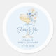 Weiche blaue Blumen und eine zarte Schleife umrahmen diesen Love in Bloom Brautparty Dankeschön-Aufkleber, perfekt zum Verschließen von Umschlägen oder Dekorieren von Gefälligkeitsbeuteln. Entwickelt, um perfekt mit den passenden Einladungen und Feierstücken dieser Kollektion zu harmonieren.