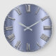 Blue Lux Gray Metallic Gray Silver Roman Numbers Große Wanduhr