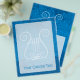 Lyre mit vier Saiten auf blauem Grunge Hintergrund.