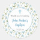 Blue Magnolias boy baptism thank you sticker is perfect for thank you favors! The design features watercolor blue magnolias and green botanicals with a small blue cross, room to say "thank you for coming", the child's name and the date of the baptism or christening. See collection for coordinating items.