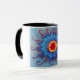 Blaues Mandala zeichnend auf Combo-Tasse.