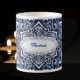 Dies ist eine elegante Blue Mandala Snowflake Tasse. Personalisieren Sie es für sich selbst oder geben als Geschenke. Es ist eine hübsche Art, den Tag mit Ihrem morgendlichen Kaffee zu beginnen. Fügen Sie ihren Namen für Personalisierung hinzu.