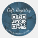 elegant blue marble gift registry qr code baby shower Classic Round Sticker