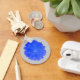 Dieser hübsche Schlüsselanhänger zeigt ein Foto einer riesigen Blume, die so bearbeitet wurde, dass sie eine atemberaubende, hellblaue Farbe hat. Die Blume sitzt auf einem grauen Hintergrund.