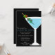 Unser Blue Martini Cocktail Party lädt mit einem glitzernden blauen Martini mit Olivengarnisch und hübschem blauen "Cocktail Party" auf einem dramatischen schwarzen Hintergrund ein.