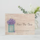 Diese Blue Mason Jar Violets Wedding Save The Date Announcement zeigt meine Maus Gezeichnet Kunst. Ideal für eine Vintage Hochzeit.