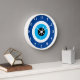 Blue Mati Evil Eye Symbol Rundwanduhr. Blaues mati griechisches / türkisches Symbol für Schutz und viel Glück. Maßgeschneiderte Uhr für Zuhause, Party, Hochzeit, Bar, Restaurant, Büro etc. Optional mit Text personalisieren.
