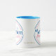 eine 11 unzen Medium Brew Kaffee Tasse mit blauem Griff und innen eine Tasse gefüllt mit Magie!