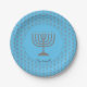 Elegante Sky Blue Menorah HANUKKAH Papier Teller, die Imitate silber grauen Menorah in einem gefliesten Muster. In der Mitte befindet sich ein Bild einer großen menorah, die CUSTOMIZABLE ist, sodass Sie Ihr eigenes Bild hochladen können. Darunter steht CHAG SAMEACH. Dies ist auch anpassbar, sodass Sie Ihren Gruß und/oder Namen hinzufügen können, etc (bis zu zwei Zeilen). Dieses minimalistische, einfache und elegante Design eignet sich besonders für Hanukkah und andere jüdische Feste. In anderen Farben, und passende Elemente sind verfügbar.