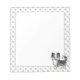 Desteis originelle Cartoon-Illustration eines blauen merle langen Mantel Chihuahua Rasse Hund. Die Kanten auf dem Hintergrund haben ein Muster von grauen Hundepads, während die Mitte weiß ist.
