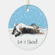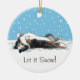 Blue Merle Shetland Sheepdog cartoon dog rolling in the snow with snowflakes coming down. This Sheltie Christmas ornament makes a sweet gift and treasured keepsake to display on the Christmas tree for years to come. Personalize with your own text. Visit Jenn's Doodle World for even more holiday ohrs with this cute winter dog design and more dog breed art and home decor.