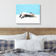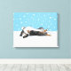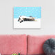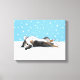 Shetland Sheepdog Canvas Print. Niedlich zeichn einer blauen Merle Sheltie, die im Schnee mit Schneeflocken abrollt. Besuchen Sie Jenn’s Doodle World für noch mehr Produkte mit diesem Hundedesign und vielen Hundeschenkgeschenken.