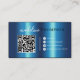 Blue Metallic Brush Steel Script QR Code Visitenkarte