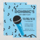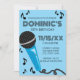 Mach dich bereit, das Mikrofon zu rocken, mit dieser lustigen und modernen Musik-Geburtstagseinladung! Mit einem auffälligen blauen Mikrofon-Grafikelement, spielerischen schwarzen Noten und stilvollen art-deco-inspirierten Schriften findet dieses Design die perfekte Balance zwischen cool und feierlich. Das saubere Layout und der helle Himmelblau-Hintergrund machen es ideal für eine Karaoke-Party, den Geburtstag eines Musikliebhabers oder eine Rockstar-Feier.