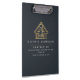 Eine einfache und minimalistische Business-Zwischenablage mit Ihrem Namen und Ihrem Titel. Die luxuriöse, ästhetische Business-Zwischenablage besticht durch ihr einzigartiges modernes Design und das edle High-End-Ambiente. Ideal für private oder kommerzielle Auftragnehmer verschiedener Bereiche. Die Vorderseite der Zwischenablage ist in weißen Textfarben gehalten, ebenso wie eine goldene Imitat-Folie.