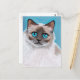 Postkarte für Katzenliebhaber mit einem Bild von Lisa Marie Robinson. Das Artwork zeigt ein Bild einer jungen Lumpen-Katze oder ein Kätzchen mit schokoladenspitzen Farben. Die Katze posiert vor einem schönen blauen Hintergrund, um ihren blauen Augen zu entsprechen. Copyright © Lisa Marie Robinson Alle Rechte vorbehalten. Es ist verboten, diese oder eines unserer Bilder ohne schriftliche Genehmigung zu benutzen oder zu duplizieren.