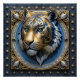 Dieses 3D-Kunstwerk imitiert die Handwerkskunst eines Goldschmiedemetalarbeiters, der sich auf Gold, Silber und andere wertvolle Metalle spezialisiert hat. Das Portrait eines 3D-Tigers in Metallic-Gold- und Silbertönen, Set vor einem Hintergrund aufwändiger barocker Blätter. Das Kunstwerk wird gedruckt, um die reichen Texturen visuelle Effekte der Metallic-Elemente zu erfassen.