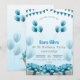 Your blue modern birthday invitation features festive balloons, bunting flags, gift boxes with bows, and clean lines on a light blue background—ideal for a contemporary party vibe.