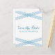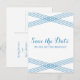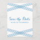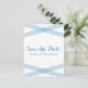 Einfach und elegant Moderner Deko Save the Date Postcard mit gestreiftem, kreuz-kreuz geschraftetem Deko-Design in blau. Diese klassische Save the Date Postkarte lässt sich einfach mit Ihren Hochzeitsdetails anpassen. Klicken Sie für weitere Anpassungsoptionen auf die Schaltfläche Anpassen.