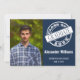 Diese moderne und schlichte Abschlussfeier mit weißer Typografie in einem Kreis wie einer Briefmarke, die "Klasse von" und den Abschluss Jahr, auf einem marineblau Hintergrund ist perfekt für ein High School oder Uni-Abschluss Party. Geben Sie einfach das Foto, den Namen und das Jahr des Abschlusses des Absolventen ein. Füllen Sie alle Party-Informationen auf der Kartenrückseite aus. Andere Hintergrundfarben sind auch in unserem Shop erhältlich.