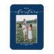 Frohe Weihnachten! Mit diesem anpassbaren, modernen Weihnachtsmagneten senden Sie Weihnachtswünsche an Familie und Freunde. Es zeichnet sich durch ein elegantes Drehbuch und eine einfache Typografie aus. Personalisieren Sie dieses Foto Weihnachtskarte durch Hinzufügen von Namen und ein Foto. Dieser blaue Weihnachtsmagnet ist auf anderen Karton- und Farbkartons erhältlich.