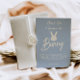 Einfache moderne Niedlich Bunny Baby Boy Dusche Dankeschön Karte. Die warme Farbpalette aus weichem Blau, das Beige Elfenbein, Set die Bühne für eine Boho Chic und Elegant Affair. Von stilvoller Typografie bis zum bezaubernden Kaninchenthema. Vergessen Sie nicht, die ganze Sammlung zu entdecken.