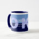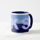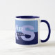 Modernes, zweifarbiges blaues Design für eine Kaffee-Tasse, personalisiert mit Namen und Beruf (Betriebswirtschaft)... alles bearbeitbar.