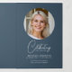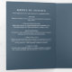 Moderne, schieferblau-weiße Dreifach-Feier des Lebensgeschehens mit einem eleganten, minimalistischen Layout, das einen geliebten Menschen mit Eleganz und Klarheit ehrt. Die Vorderseite beinhaltet ein benutzerdefiniertes rundes Foto mit dem Namen und den Lebensdaten Ihres Liebsten, das in einer raffinierten Mischung aus Serif und Schrift-Typografie präsentiert wird. Die Innenflächen sind gut strukturiert, um die Gäste durch die Reihenfolge des Dienstes zu führen, mit den dafür vorgesehenen Abschnitten für Lesungen, Tributen oder Auszeichnungen, und einem speziellen Empfangsbereich für Paläste, Dienstleister und Dankesbekundungen. Dieses zeitgenössische und würdevolle Design ist ideal für Gedenkveranstaltungen oder Feiern von Lebensveranstaltungen und bietet eine berufliche und herzliche Anerkennung.