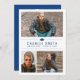 Modern and minimal typography graduation announcements with 3 photos, fun graduation party invitation on the back in blue and white, Custom it with your own photo and party information.