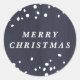 Created to coordinate with the "Snow Globe" holiday card, this festive sticker features the greeting "Merry Christmas", and a handful of tiny dots that create the illusion of snowfall. There is a subtle painterly texture in the background. These stickers are perfect for labeling gifts and party favors, or they can be used to seal holiday envelopes.