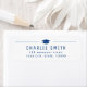 Modernes typografisches Design mit Graduierungshülse in blau und weiß, großartiges personalisiertes Rücksendelabel für Graduiertenparty.