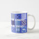 Blaues Patchwork-Muster im Stil eines Quilts mit Blumenkunst. Und ein Satz könnte Ihren Kaffee stark machen und Ihr Montag kurz sein.