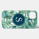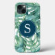 Dieses monogramm Handy Gehäuse verfügt über tropische Aquarellfarben-Blätter in grünen Farbtönen, mit einem eigenen, weißen Original auf einem marineblau-blauen Hintergrund. Aquarellmonstera Palmblattwerk und Design von Victoria Grigaliunas. Weitere Fälle wie dieses am Strand finden Sie unter www.zazzle.com/dotellabelle