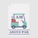 Niedliches Personalisiertes "Above Par" Vatertag Golf Handtuch mit einem blauen und grünen Golfwagen und individuellen Initialen.