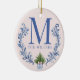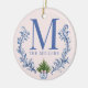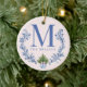 Blue Monogram Wappen mit Weihnachtsbaum Keramik Ornament