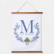 Blue Monogram Wappen mit Weihnachtsbaum Wandteppich Mit Holzrahmen