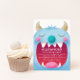 Niedliche Geburtstag Party Einladung Vorlage für Ihre Kinder Monster-Themenparty! Illustration eines blauen Monsters mit zwei Hörnern, die seinen Mund weit öffnen. Die Texte sind in den Mund mit dem Namen, dem Alter und den Informationen des Geburtstagsjungen.