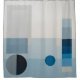 Blau-graue Blöcke, ein kleiner blauer Kreis, ein größerer, schwarzer und grauer Kreis bilden einen schönen minimalistischen Duschvorhang der modernen Kunst.