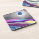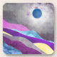 Ein wunderschönes abstraktes Landschaftsdesign mit blauem Mond und farbenfrohen, strukturierten Hügeln in den Farbtönen lila, violett, blau, cyan und gelb.