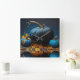 Blue Moon Pumpkins Herbstleaves Quadratische Wanduhr