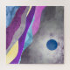 Ein wunderschönes abstraktes Landschaftsdesign mit blauem Mond und farbenfrohen, strukturierten Hügeln in den Farbtönen lila, violett, blau, cyan und gelb.
