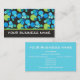 Eine helle und kühne Visitenkarte für viele Geschäftstypen mit einem abstrakten "Blue Moons"-Muster in heller Blues und Neon Green auf schwarzem Hintergrund; von Judy Adamson aus einer handbemalten Collage. Vollständig und einfach anpassbar.