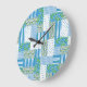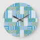 Eine hübsche Wall Clock mit einem Imitat im Landstil Patchwork aus Blumen-, Polka-Dot-, Streifen- und Karo-Gingham-Mustern in Blau, Grün und Weiß: Teil der Posh & Painterly 'Morning Glory' Kollektion. (Dieses Muster passt zu allen Uhren.)