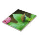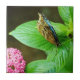 Ein Foto eines Blauen Morpho-Schmetterlings auf einem Blatt einer Penta-Pflanze.