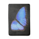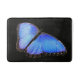 Mittlere Badematte mit blauem Morpho-Schmetterling auf schwarzem Hintergrund. Schönes Naturbild zu Ihrem Bad hinzuzufügen.